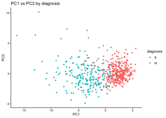 Q16. How well do the k-means and hierarchical clustering models you created in previous sections (i.e. before PCA) do in terms of separating the diagnoses? Again, use the table() function to compare the output of each model (wisc.km$cluster and wisc.hclust.clusters) with the vector containing the actual diagnoses.