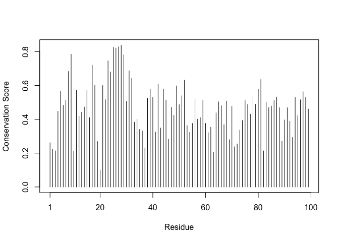 We can score residue conservation in the alignment with the conserv() function.